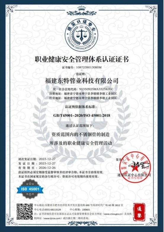 품질경영 측면에서는 동태파이프산업 제품의 높은 표준과 신뢰성을 보장하기 위해 포괄적인 품질 보증 시스템이 확립되었습니다. 회사는 ISO 인증, PED 인증, 특수 장비 생산 라이센스 및 관련 형식 테스트 인증서를 성공적으로 획득했습니다. 이러한 인증은 회사 제품의 높은 품질을 입증할 뿐만 아니라 국제 시장에서 회사의 경쟁력을 반영하는 중요한 요소입니다.